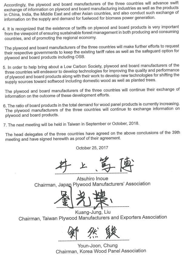 第39回 日・台・韓 合板産業懇談会会議総括(英文及び仮和訳)
